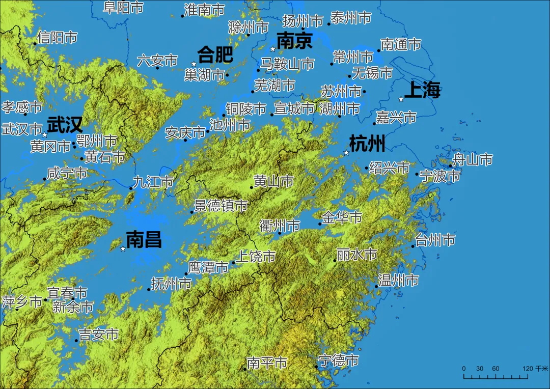 长江三角洲核心区:上海、苏州、无锡、常州、嘉兴、南通等城市会被完全淹没,整个长江三角洲平原将成为一片广阔的浅海。南京、扬州、泰州等长江沿岸城市也会因河谷倒灌而被大面积淹没,仅城市外围的低山丘陵会露出水面。