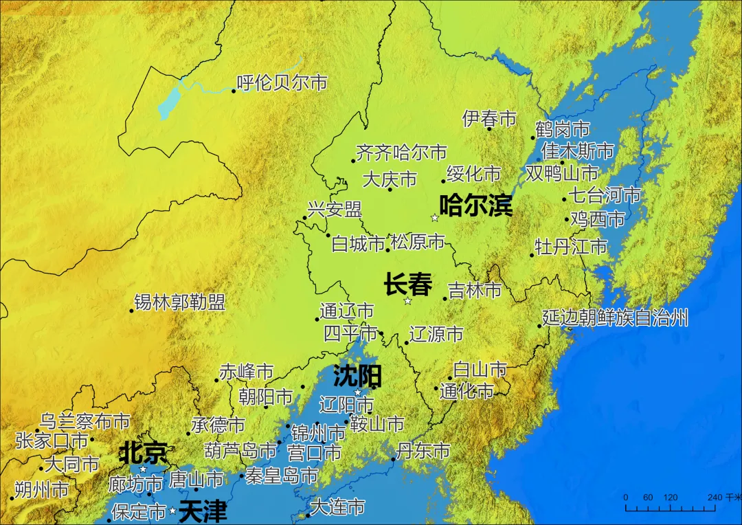 松嫩平原与核心城市:哈尔滨、长春、大庆、齐齐哈尔等城市所在的松嫩平原会被大面积淹没,松花江、嫩江下游河谷将演变为深入内陆的海湾。长春城区因平均海拔约 219 米,虽不会被完全淹没,但岌岌可危。
