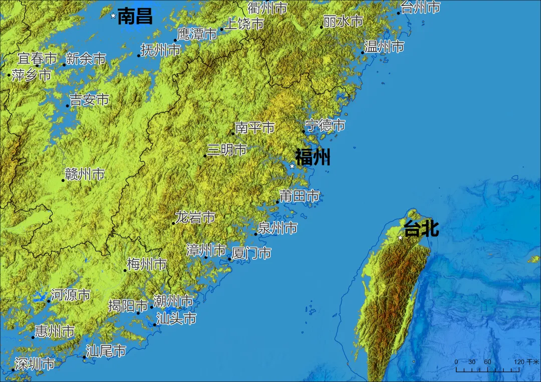 福建沿海:福州、泉州、厦门、漳州、莆田等城市所在的沿海平原和河口三角洲会被完全淹没,仅内陆的山地丘陵(如戴云山、武夷山余脉)会成为孤立的 “岛屿”。闽江、晋江等河流的下游河谷会被海水倒灌,形成深入内陆的海湾。