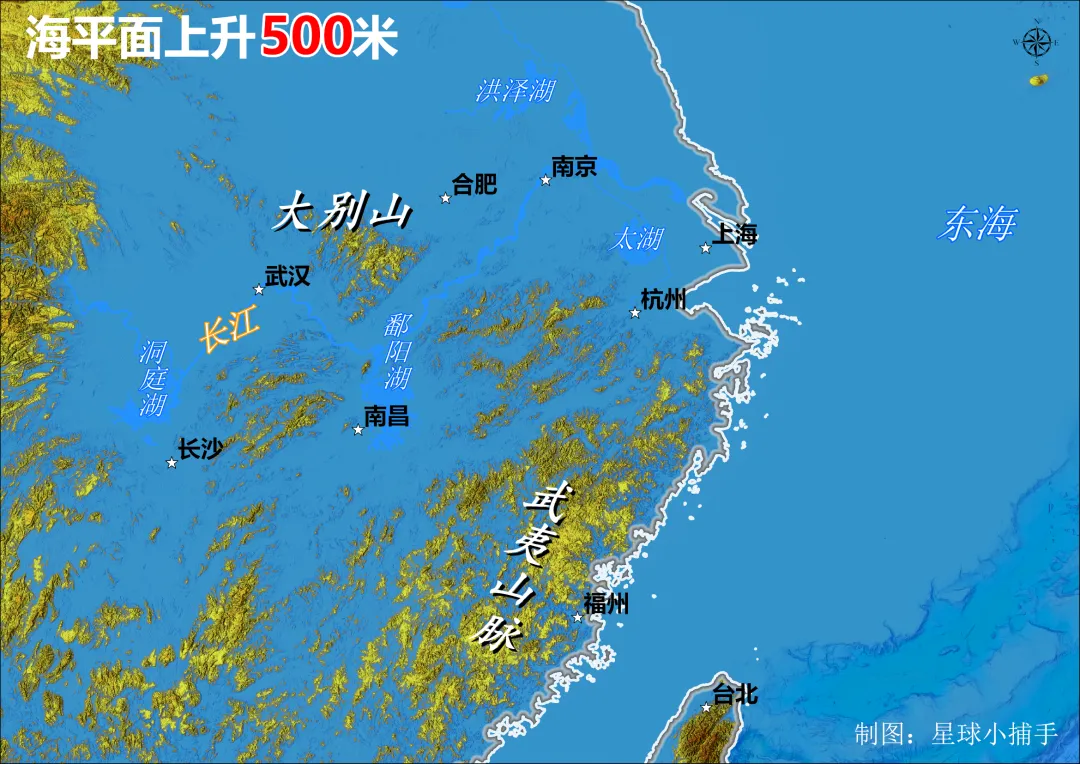 当海水淹没半个中国:模拟海平面上升500米的恐怖推演
