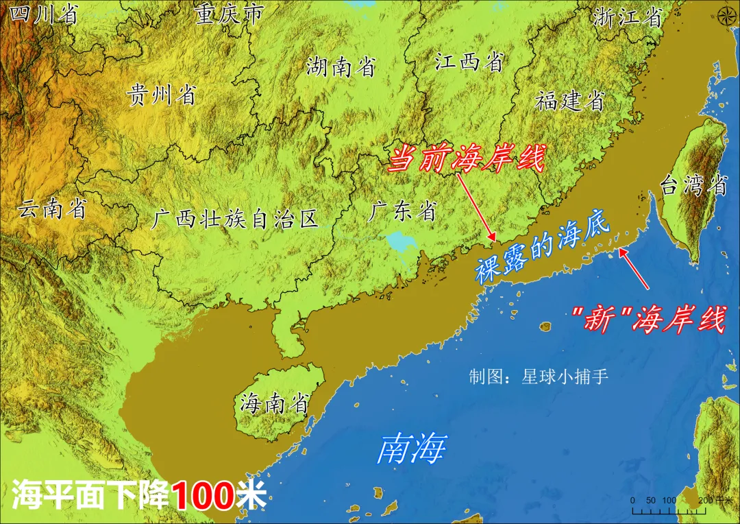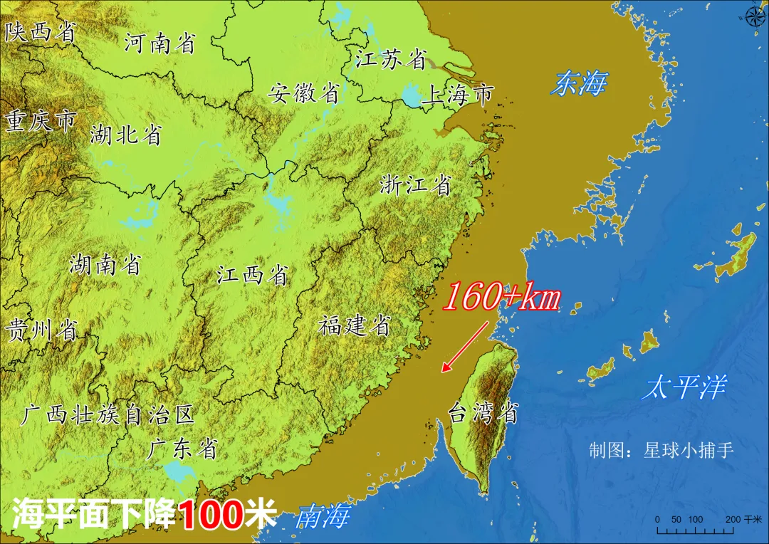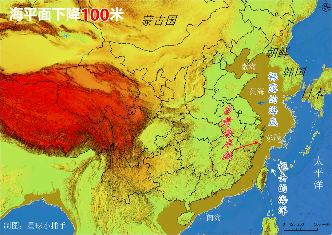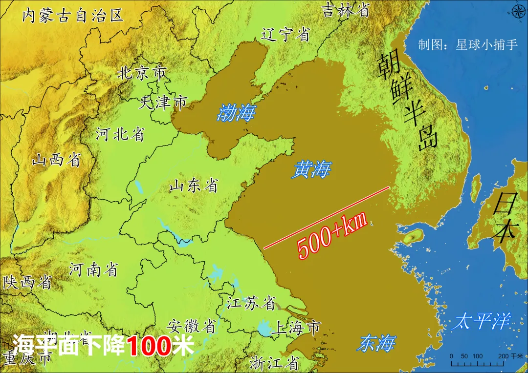 模拟海平面下降100米,中国多了个黄海省?